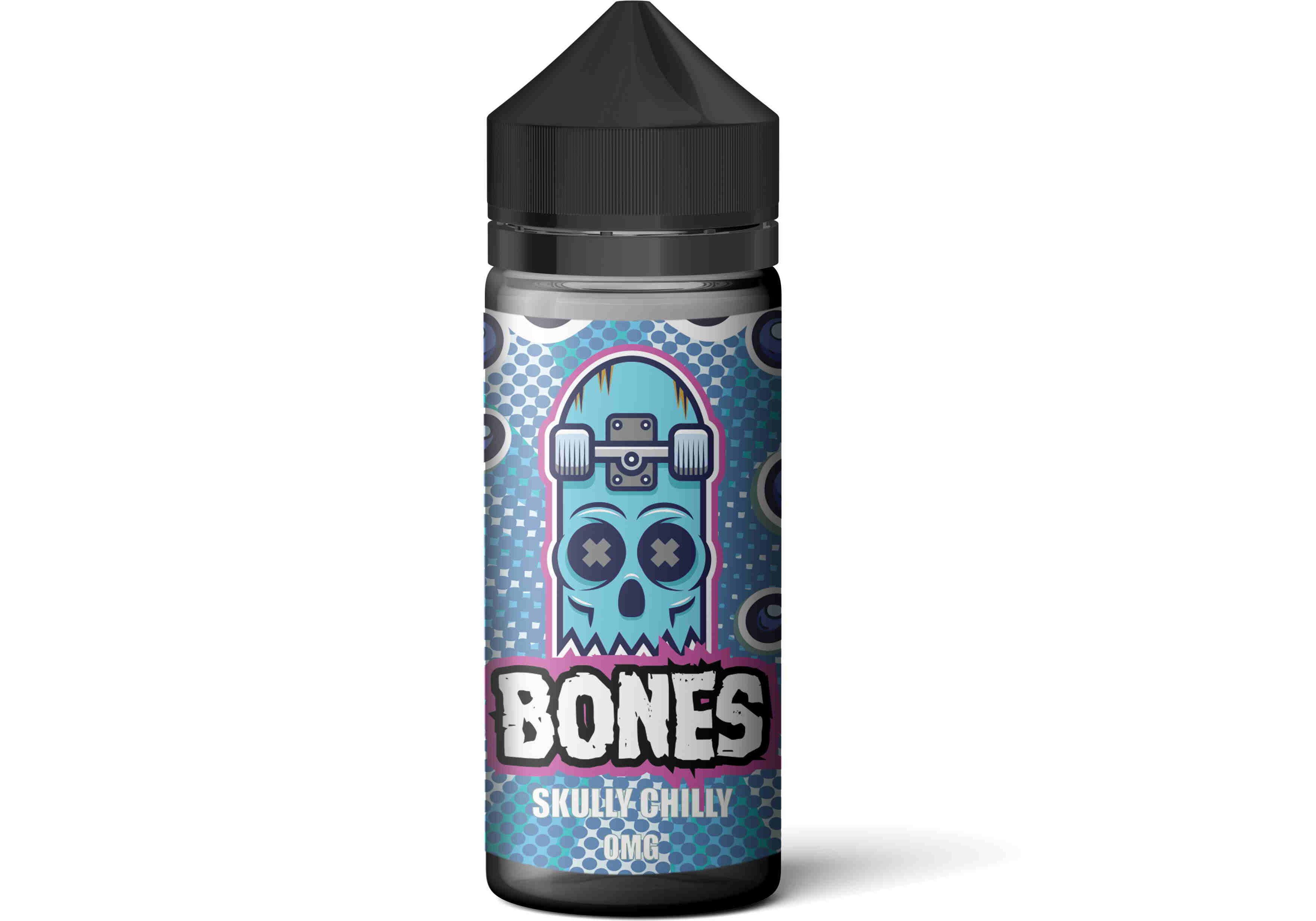 Skully Chilly e-liquid by Bones is a fruit candy blend with a cool finish. A strong bubblegum flavour has its sweetness intensified by blackcurrant syrup, and cooled by a wave of menthol.